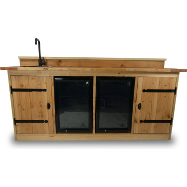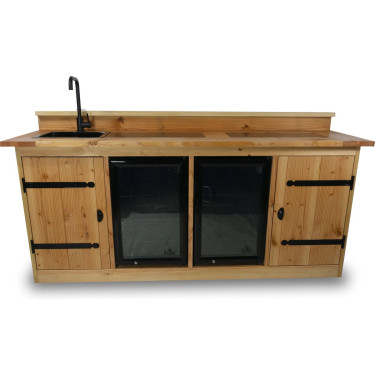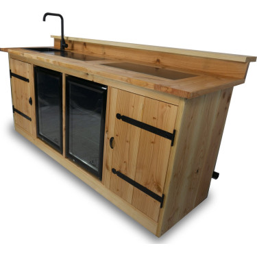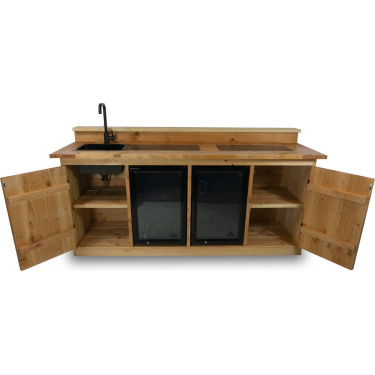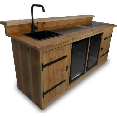 Geproduceerd uit hoogwaardig douglas hout, aan beide zijden glad geschaafd, en afgewerkt met keramische tegels (30 x 60 cm), combineert de Brisbane stijl, duurzaamheid en functionaliteit. Voeg daar een stevig barblad met barstang aan toe, en u heeft niet alleen een keukeneiland, maar ook een perfecte plek voor gezelligheid.