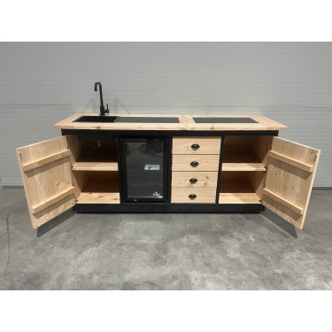 Met een handige 70-liter koelkast (instelbaar van 0-10 graden) houd je dranken en ingrediënten altijd op de perfecte temperatuur. Daarnaast beschikt deze buitenkeuken over een moderne wasbak en kraan, zodat je gemakkelijk kunt spoelen tijdens het koken.