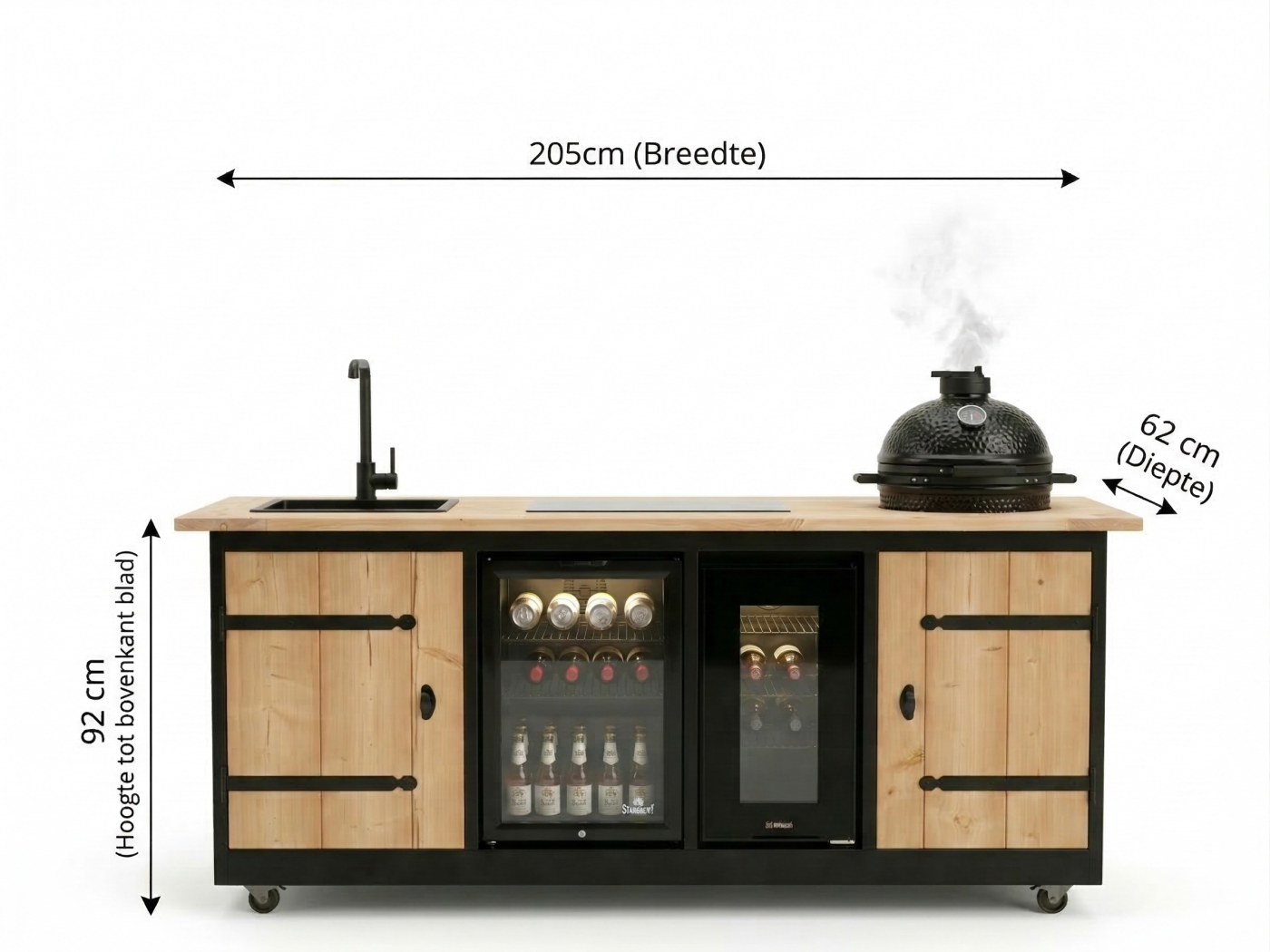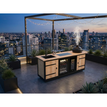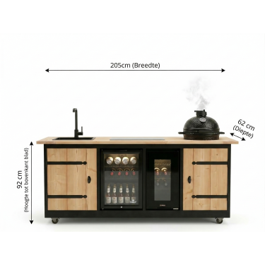 Met een robuust design van 205 x 62 x 92 cm (inclusief zwenkwielen) en een scheerlijk afgewerkte keramische tegel (30 x 60 cm), beleeft u functionaliteit en design op hun best. Stijlvol afgewerkt met een diep zwart gebeitste omlijsting, is de Marseille niet zomaar een buitenkeuken, maar een echte blikvanger!