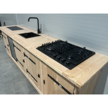 De Buitenkeuken Montreal is dé perfecte mix van functionaliteit en elegantie, speciaal ontworpen om jouw buitenkookervaring naar een hoger niveau te tillen. Deze hoogwaardige buitenkeuken, met een afmeting van 253 x 66 x 92 cm, is vervaardigd van stevig douglashout dat aan beide zijden glad is geschaafd, waardoor een luxe en duurzame uitstraling wordt gecreëerd.